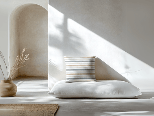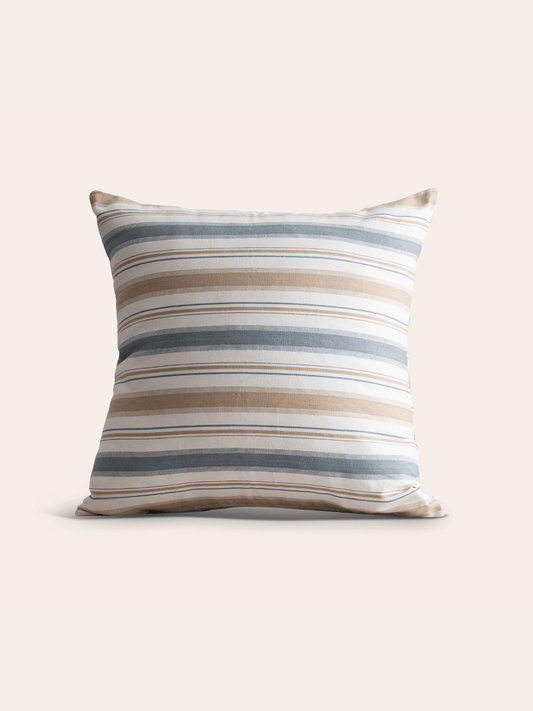 Montauk Blue and Brown Striped Cotton Cushion Cover